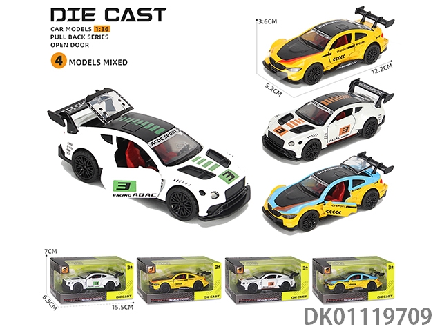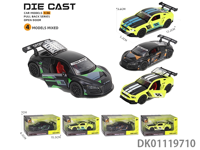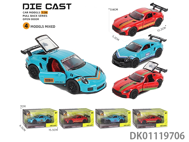 Alloy car model return 3 door sound and light sports car (1:36)