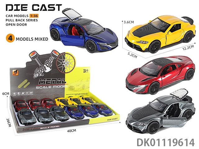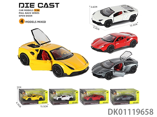 Alloy model return force acousto-optic 3-door sports car (1:36) 12pcs/box
