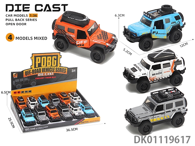 Alloy model return force acousto-optic 3-door off-road vehicle (1:36) 12pcs/box