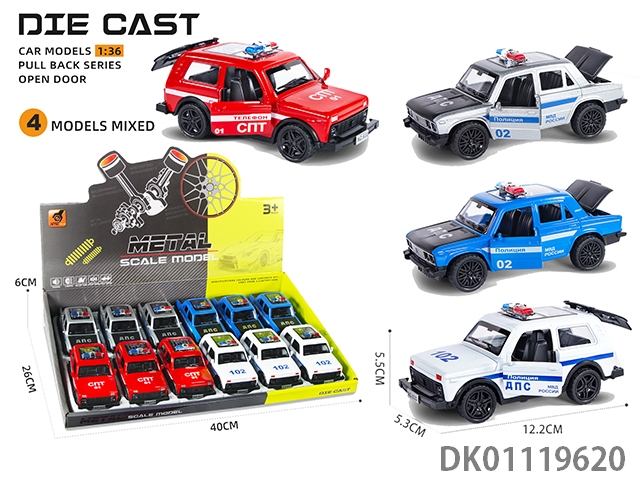 1: 36 3 Door alloy sound-light rada police car with a return force of 12pcs/box