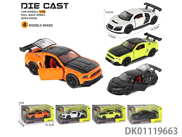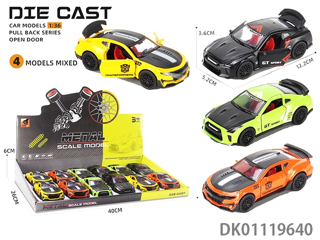Alloy car model, echo sound and light, 3-door sports car - track version (1:36), 12pcs/box