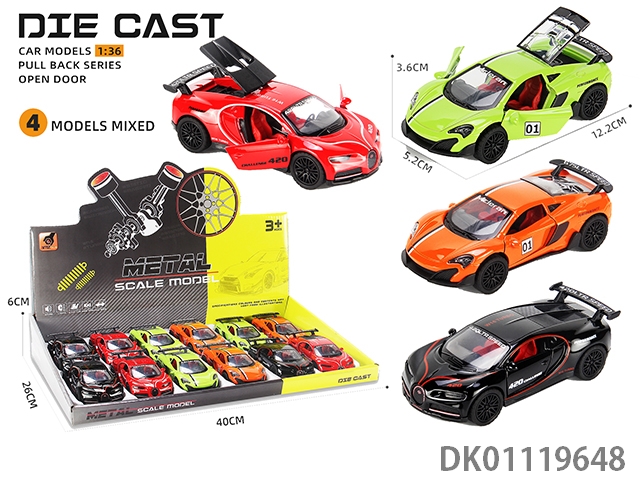 1: 36 3 Door opening alloy sound-light rada return 12pcs/box
