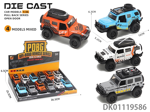 Alloy car model, 3-door off-road vehicle (1:36), 12pcs/box