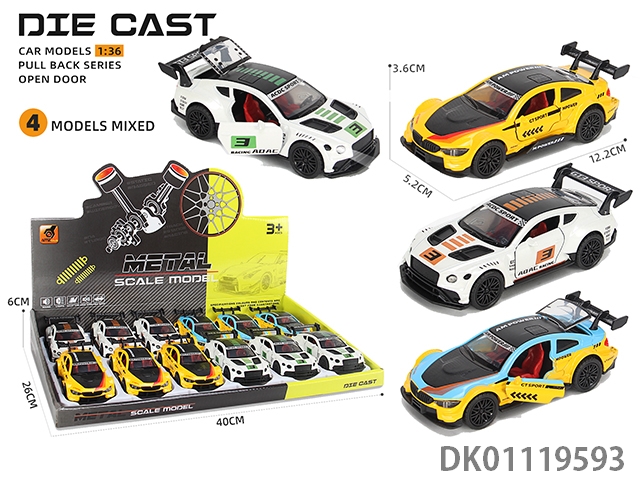 Alloy car model return 3 door sports car - track version (1:36) 12pcs/box