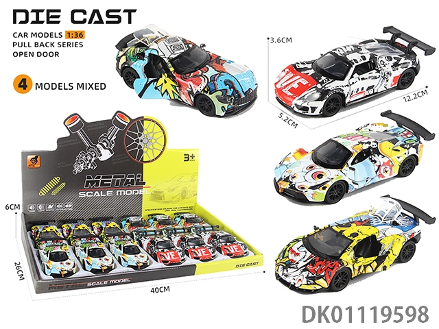 Alloy car model return 3 door sports car (graffiti) (1:36) 12pcs/box