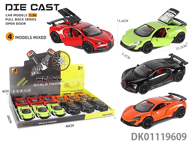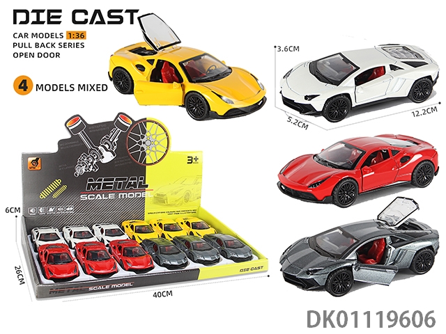 Alloy car model return force 3 door sports car sound and light (1:36) 12pcs/box