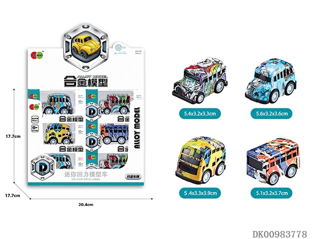 Mini q graffiti alloy school bus (8pcs/box)