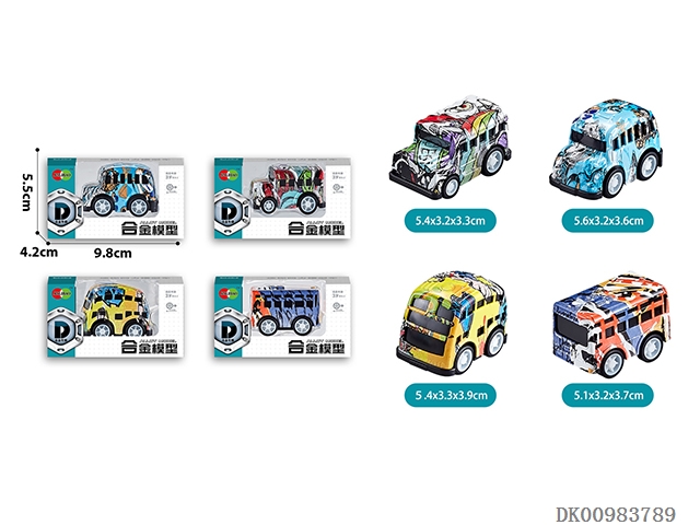 Mini q graffiti alloy school bus (24pcs/box)
