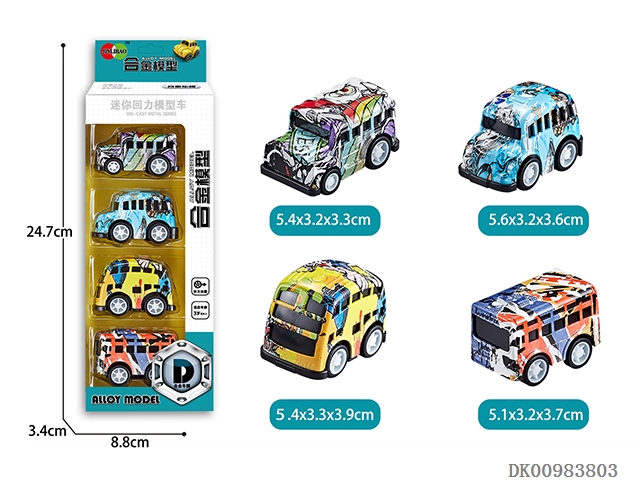 Strip window box mini q graffiti huili alloy school bus (4pcs)