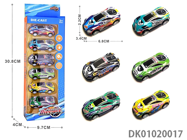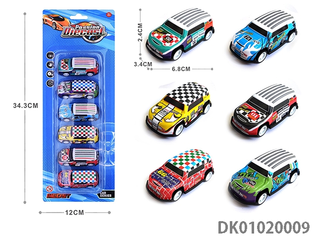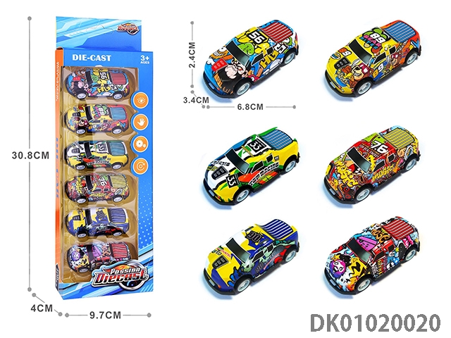 1: 6 Pieces of 64 recoil light alloy sheet iron cars