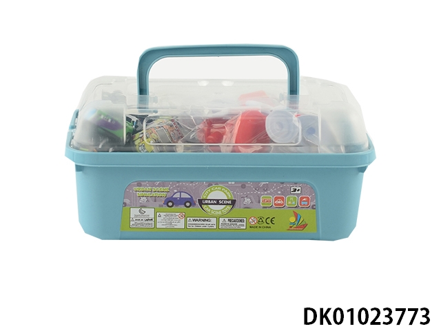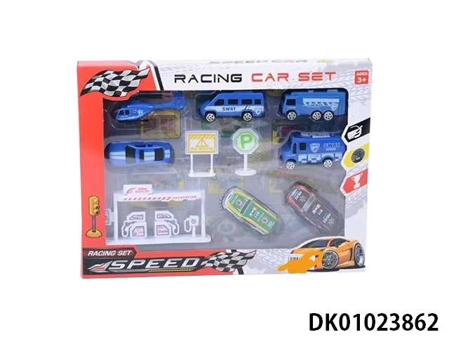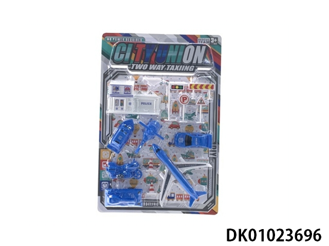 Two huili police iron cars and ten taxiing police helicopters road sign oil station kit