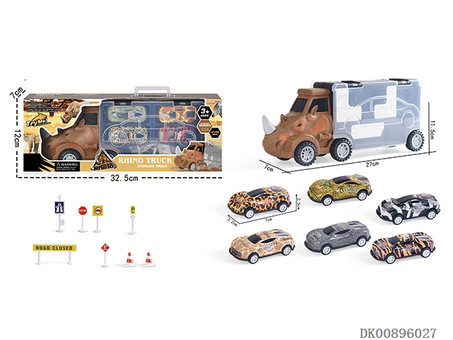 Portable container truck (4 return animal metal vehicles and 8 roadblocks)
