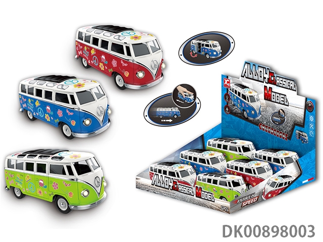 (Gcc) printed huili alloy bus 3, door opening with light and sound, power pack 6pcs / box