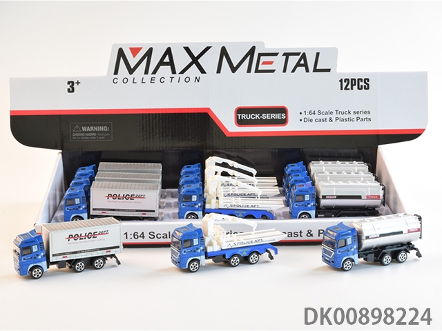 Huili alloy police car (container truck, rescue vehicle, gas tank truck) 3 mixed options (12pcs/box)