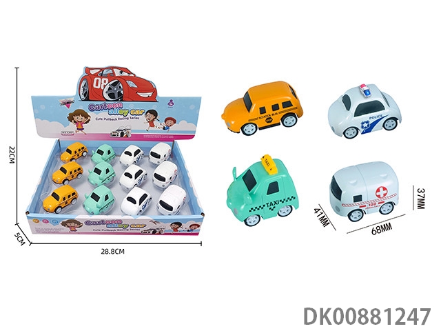 Cartoon alloy simulation vehicle display box (4 mixed packages) 12pcs/box