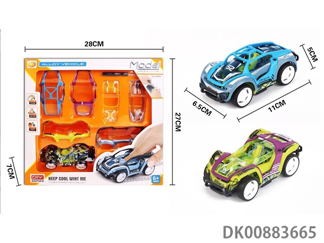 Diy alloy return racing car (alloy blue, purple, body gray, random matching of accessories) note: water transfer pattern is random