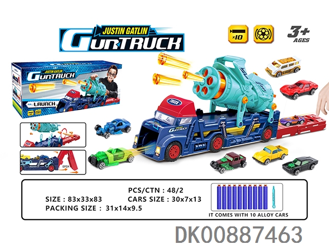 Soft bullet gatling transport vehicle with ejection diy self loading 4-in-1 (10 bullet 8 alloy vehicle)