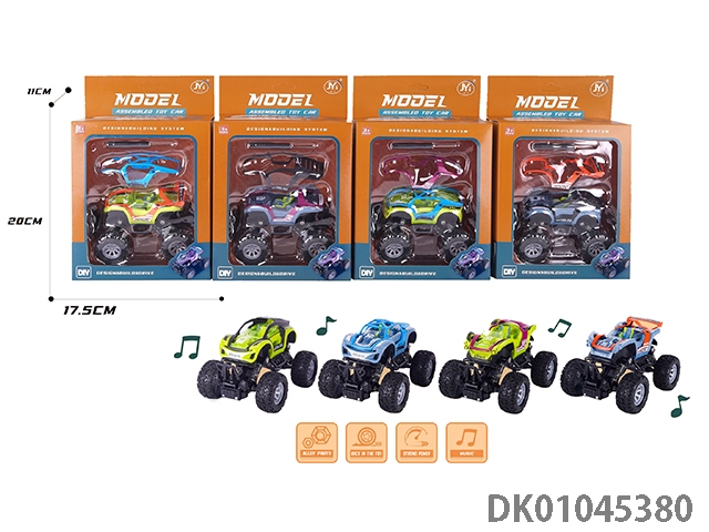 Music version diy alloy return climbing car (4 models with 2 colors and 8 models randomly mixed) with special hexagonal screwdriver