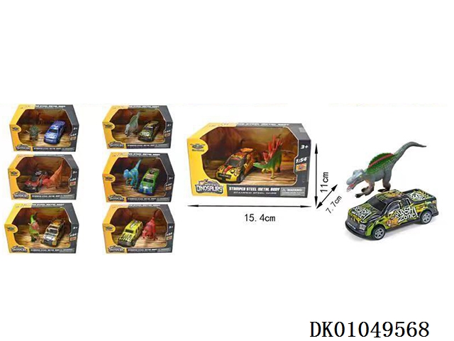 One 12cm solid pvc dinosaur and one 9cm return metal car