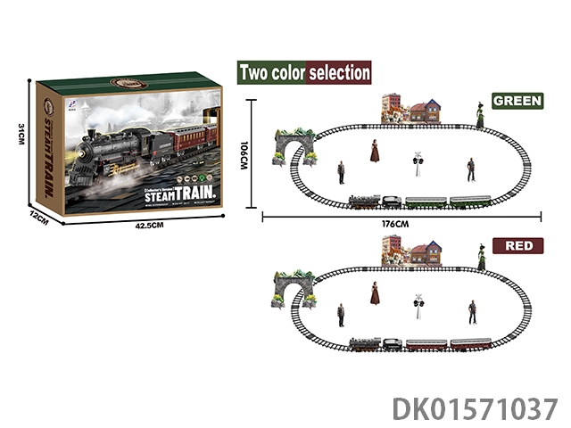 Electric plastic version intelligent lighting sound atomization smoke retro track train (carriage with lights, windows)