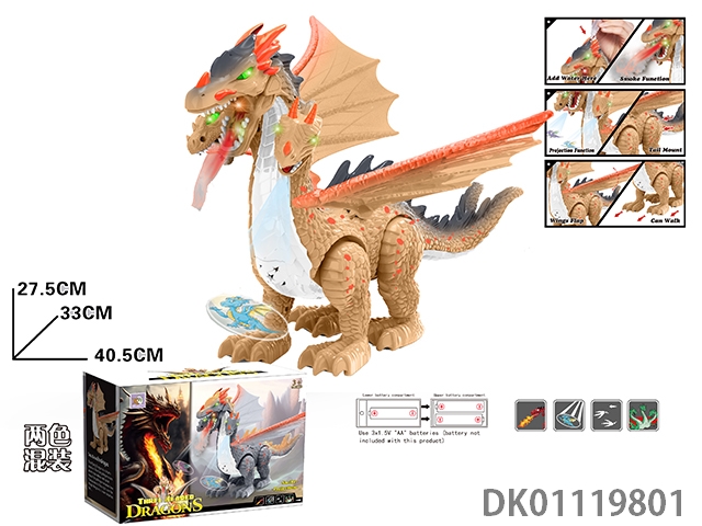 1 Fire breathing dragon, simulated walking, simulated dinosaur calling, spray function, projection function, wing swing, tail swing, with 1 spray water bottle