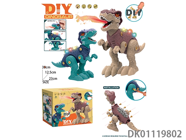 Diy disassembly and assembly electric spray tyrannosaurus rex (diy disassembly and assembly play, simulation walking, simulation dinosaur calling, spray function, equipped with 1 spray water bottle, 1 set of diy screw tools)