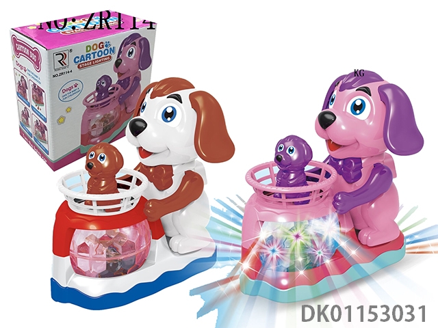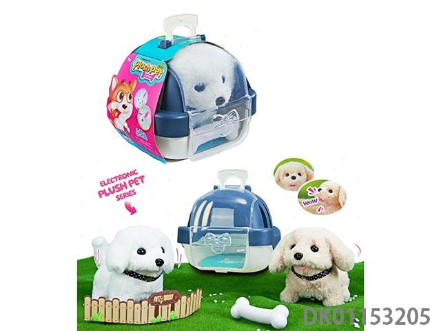 Electric plush medium size teddy dog and dog blue with food basin and bones, mirror and comb