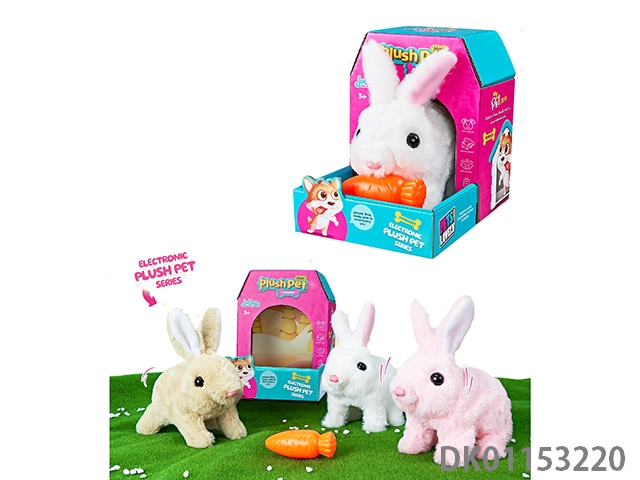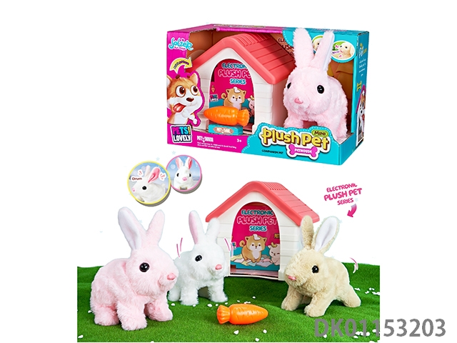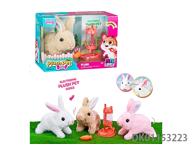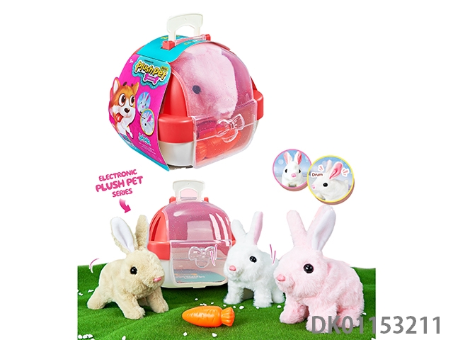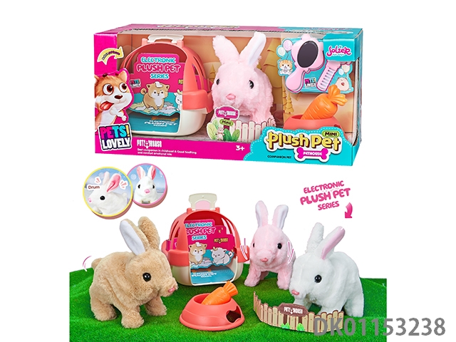 Electric plush medium size rabbit and rabbit blue with food bowl and radish, mirror and comb
