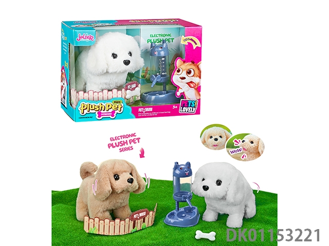 Electric plush medium size beagle/golden dog with water dispenser and bones