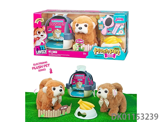 Electric plush medium size monkey and blueberry with food bowl and banana, mirror and comb