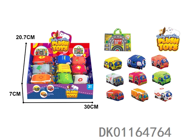 Plush craft parent-child toy baby cartoon cloth cart set (9 cars and storage bag)