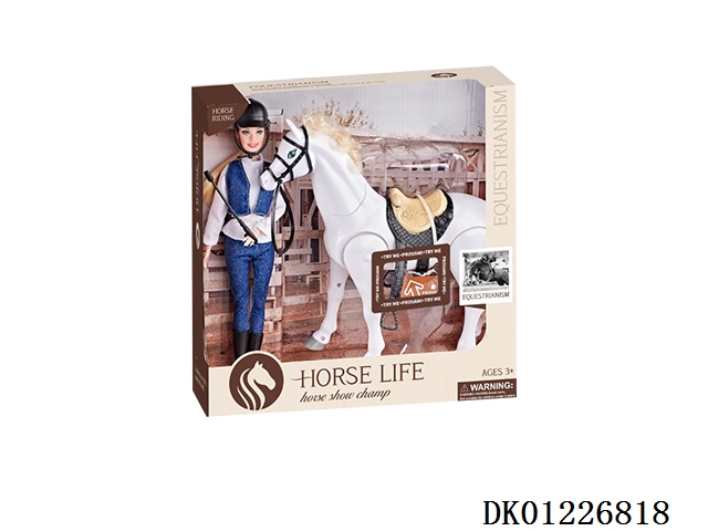 White electric horse and 29cm real body doll with joints, the sound of horse hooves (3 no. 5 batteries, including batteries)
