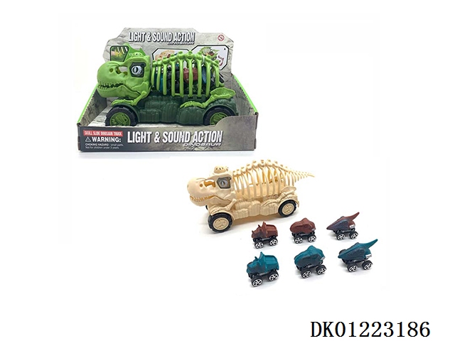 Sliding dinosaur skeleton car model - dinosaur car scene assembly combination b (sound and light version, 2-color mixed) combination b two color small cars randomly selected with 3 each