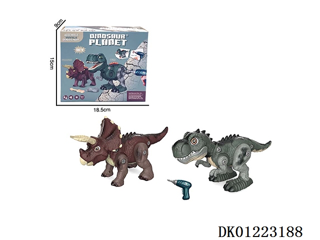 Dual electric diy disassembly and assembly of two dinosaurs with sound and lighting