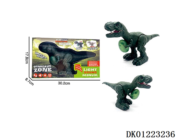 Electric egg holding swinging tyrannosaurus rex dinosaur forward with sound and light (green)