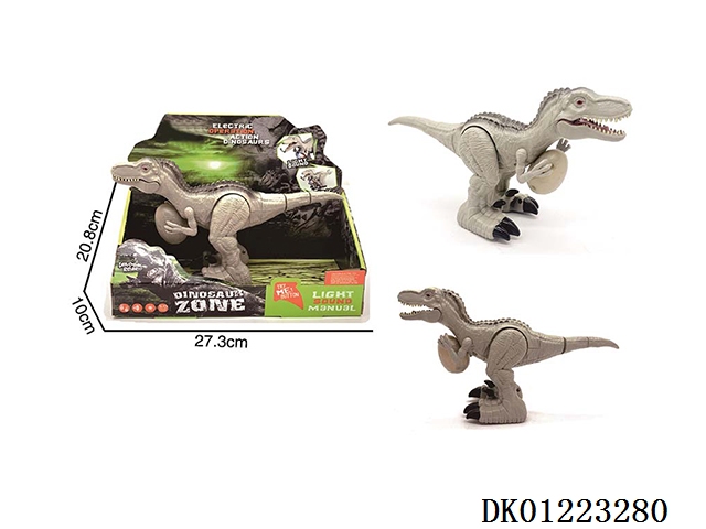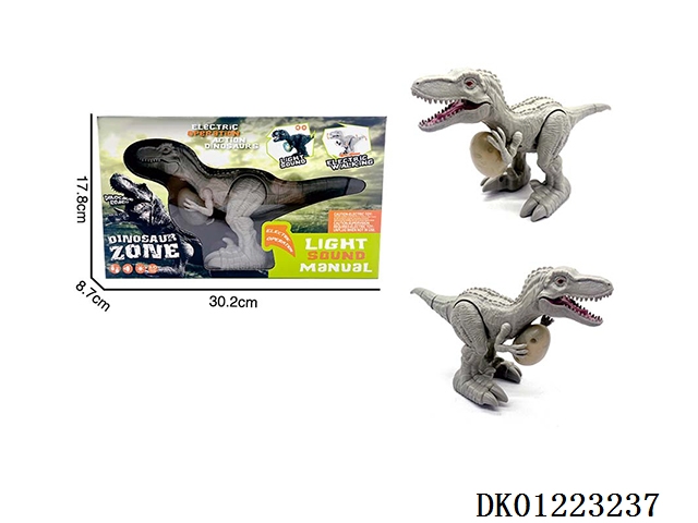 Electric egg holding swinging velociraptor dinosaur forward with sound and light (gray)