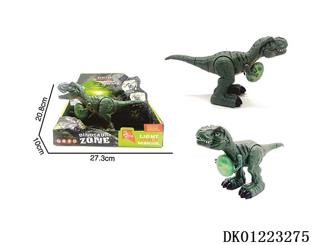 Electric egg holding tyrannosaurus rex dinosaur with light and no spray paint (green)