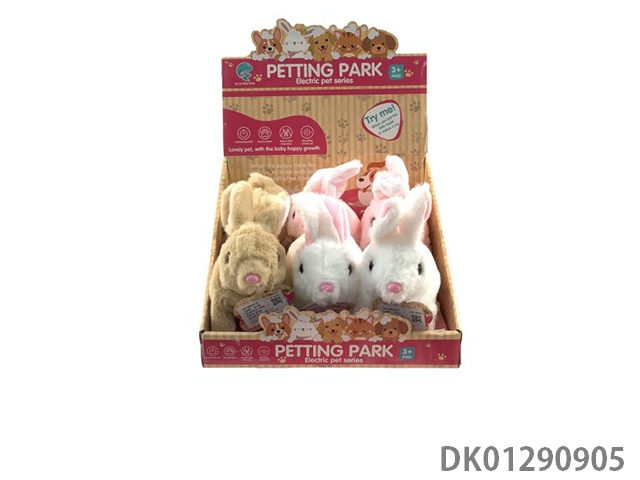Plush pulling tail animal - long haired rabbit with handheld cage and small accessories, with bb sound