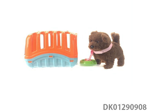 Plush pull tail wagging animal - brown cat and hand-held cage with bb sound