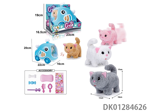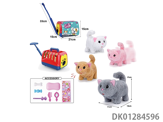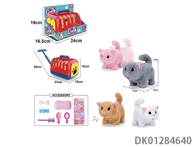 Electric plush walking cat and display box, hand pulled cage and accessories (with crawling and sound)