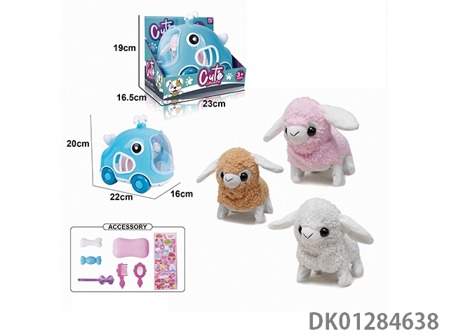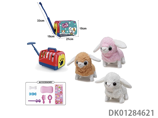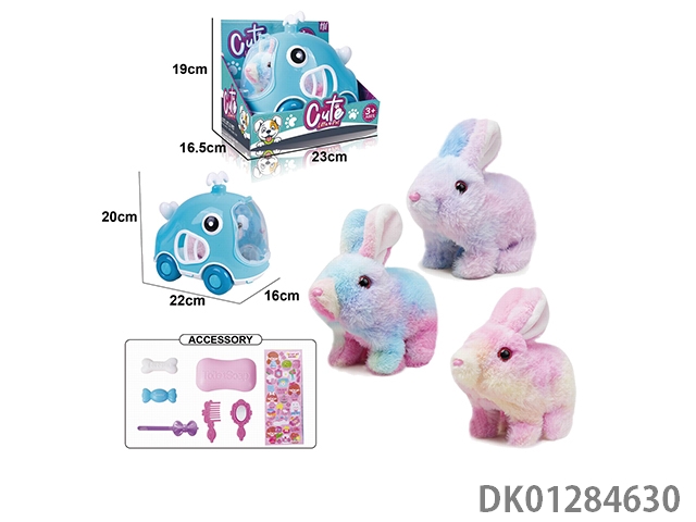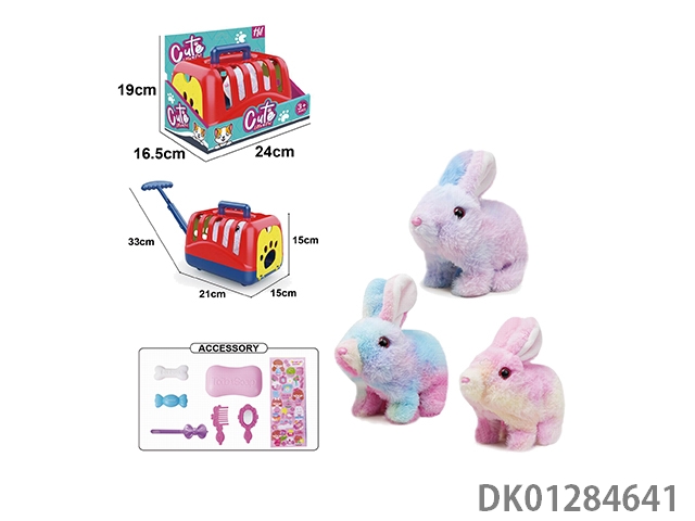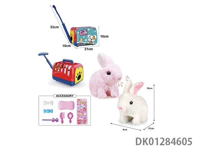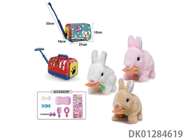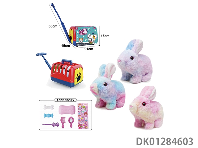 Electric plush colored walking rabbit and display box, hand pulled cage and accessories (with crawling and sound)