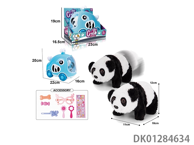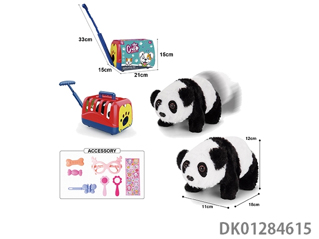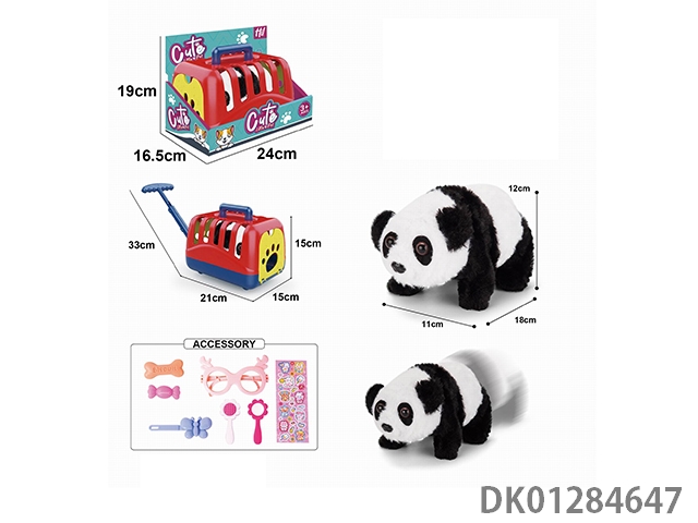 Electric plush walking panda and hand-held cage and accessory set (with crawling and sound)
