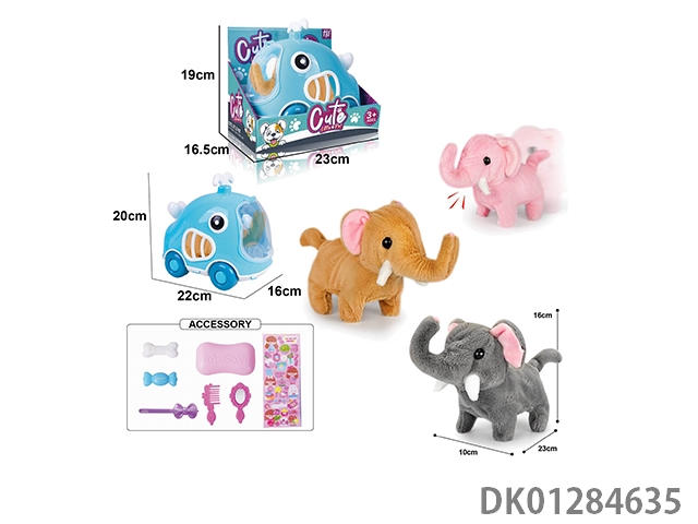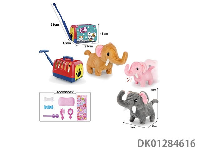 Electric plush walking elephant and hand-held cage and accessory set (with crawling and sound)
