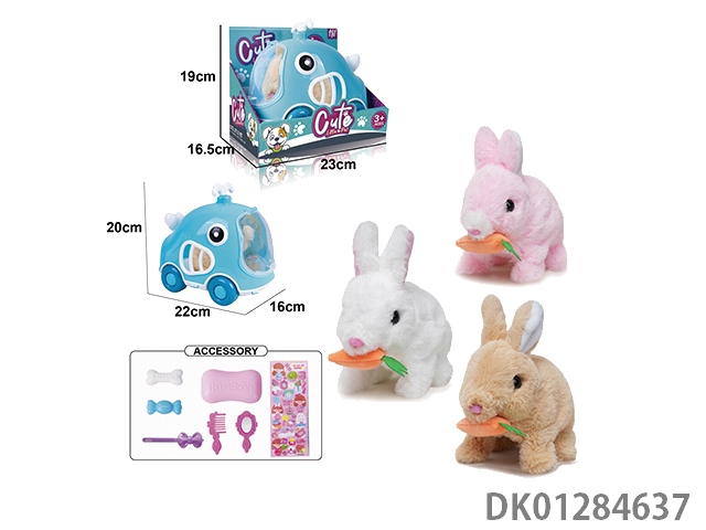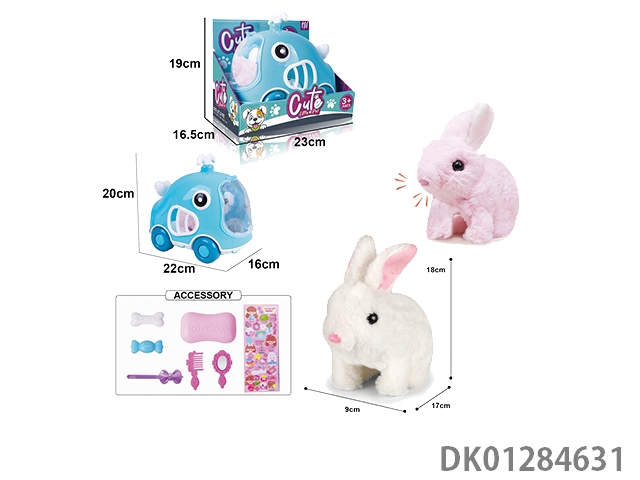Electric plush colored walking rabbit and exhibition box cage and accessories (with crawling and sound)