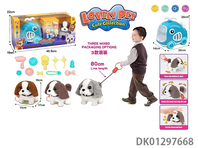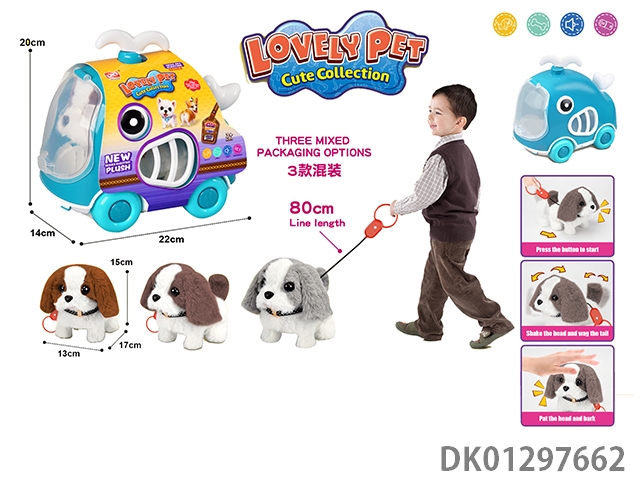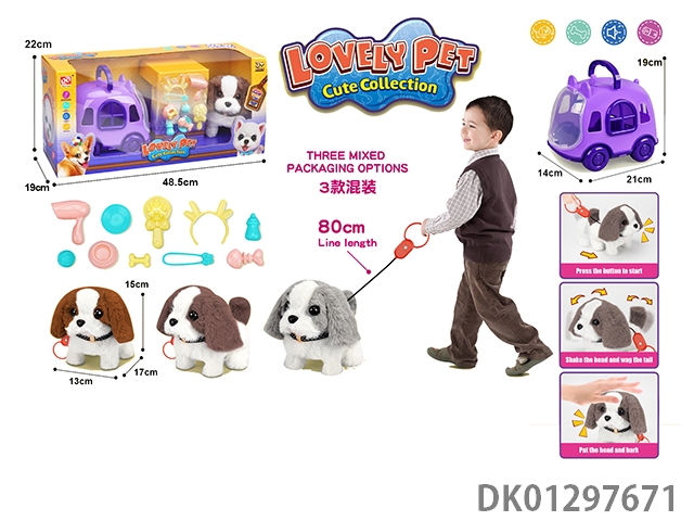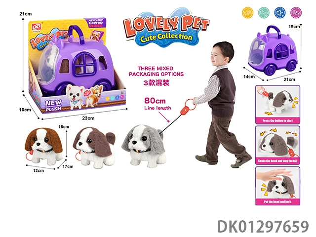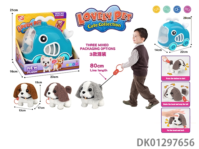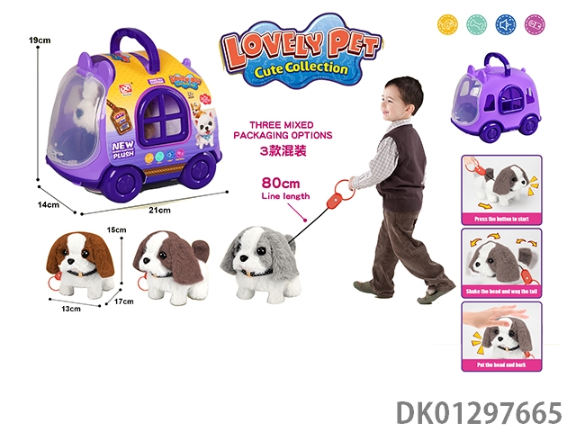 Pulling rope plush electric dog and cage