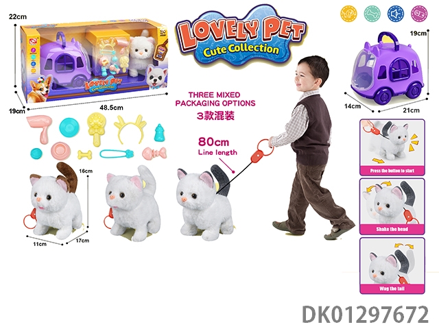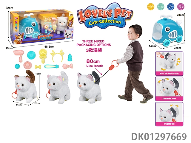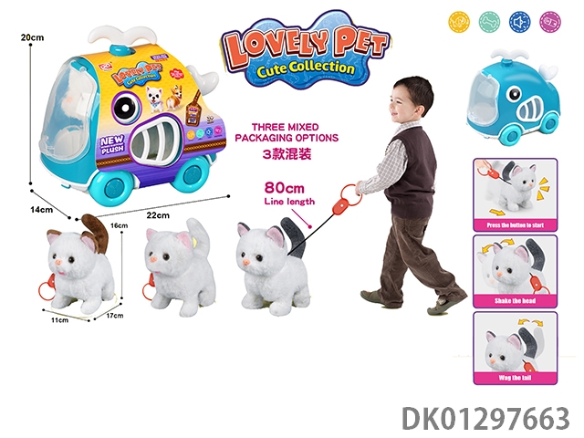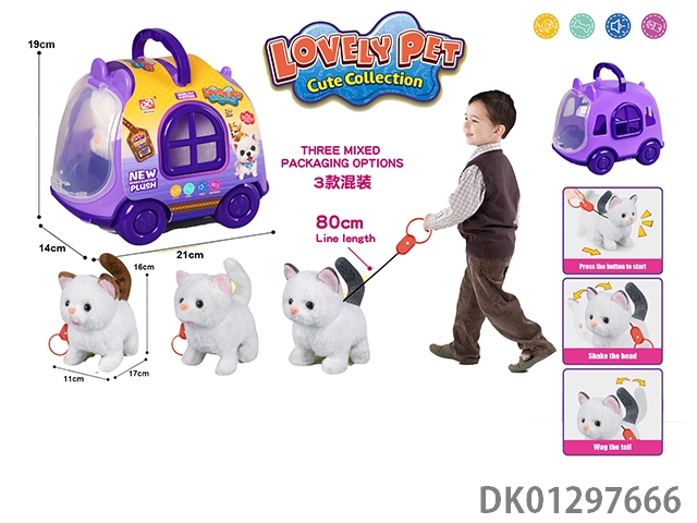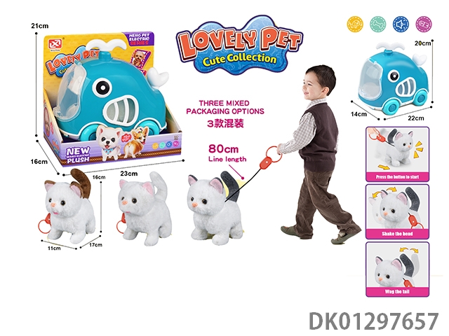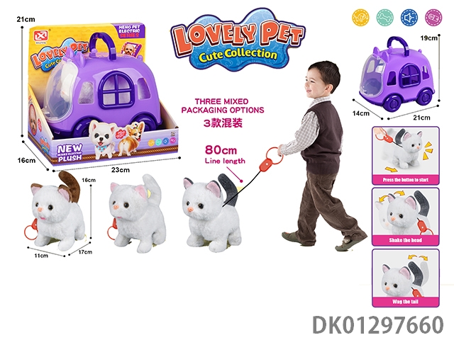 Pulling rope plush electric cat and cage