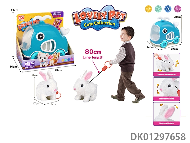 Pulling rope plush electric rabbit and whale cage
