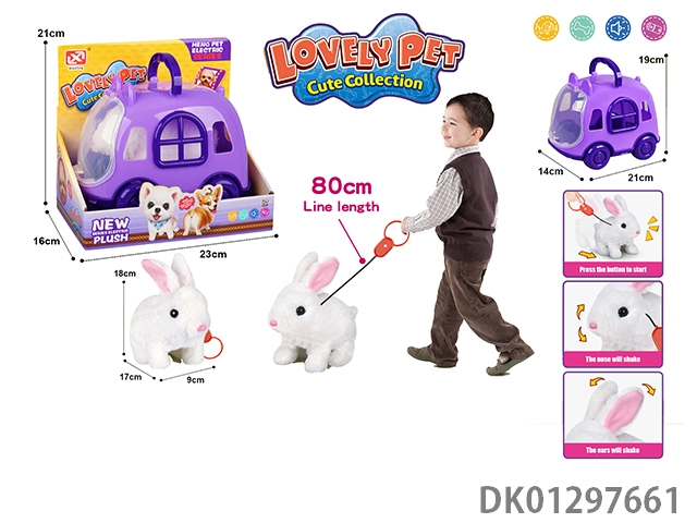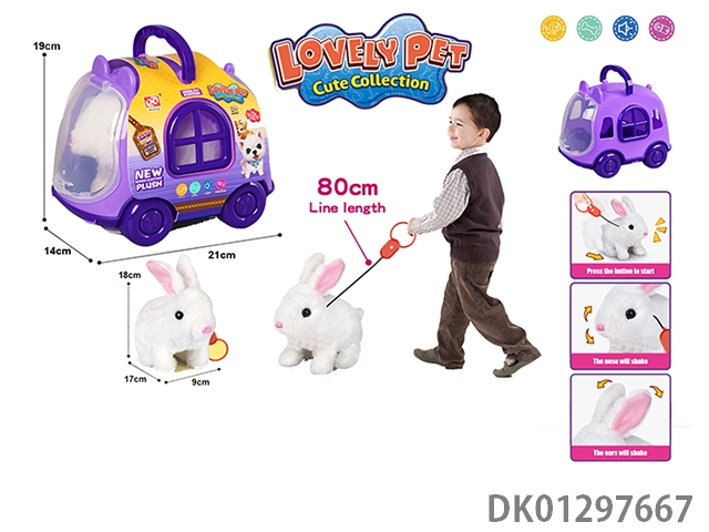 Pulling rope plush electric rabbit and cage