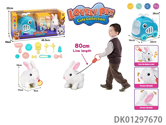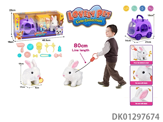 Pulling rope plush electric rabbit and whale cage fence set