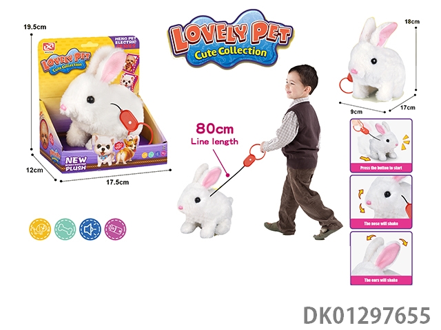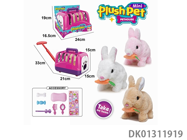 Electric plush walking rabbit biting radish and hand pulled animal cage and accessory set
